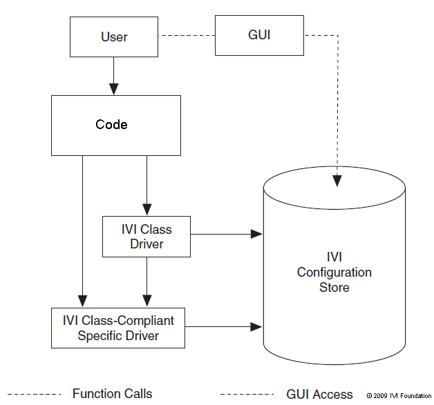 При использовании IVI-C программе необходим драйвер класса, который создает экземпляр драйвера, соответствующего классу, и вызывает в нем функции, соответствующие классу.