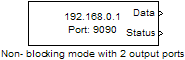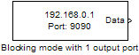 Блок приема UDP конфигурирует и открывает интерфейс к указанному удаленному адресу с помощью протокола UDP. Конфигурирование и инициализация выполняются один раз в начале выполнения модели. Во время работы модели блок получает данные либо в блокирующем, либо в неблокирующем режиме.