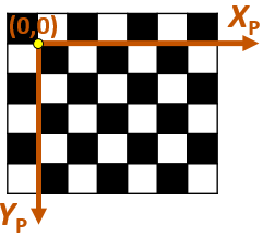 Обычным способом оценки параметров датчика монокулярной камеры является калибровка камеры с использованием множества изображений калибровочного шаблона, такого как шашечная доска. В системе координат массива (XP, YP) ось XP указывает вправо, а ось YP - вниз. Начало координат шашки - нижний правый угол верхнего левого квадрата шашки.