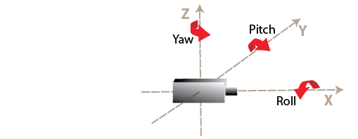 Углы рыскания, тангажа и крена датчиков соответствуют стандарту ISO. Эти углы являются положительными по часовой стрелке при взгляде в положительном направлении осей z-, y- и x соответственно.
