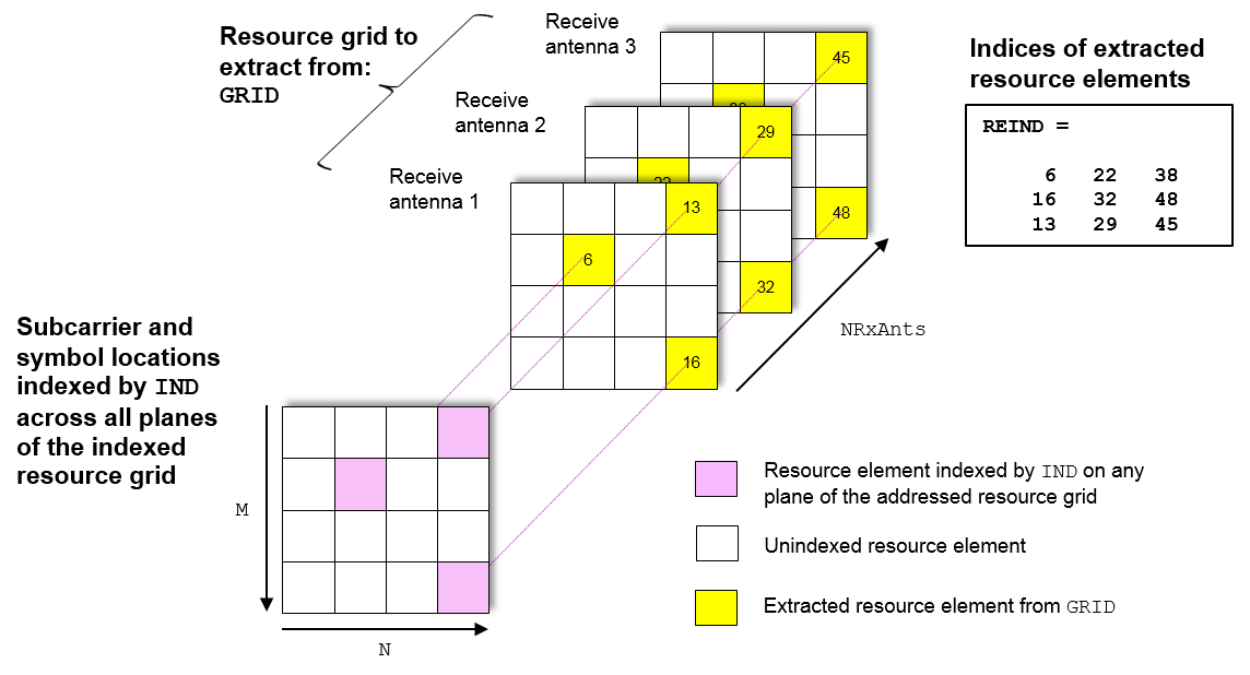 [ извлекает элементы ресурса re,reind] = lteExtractResources(ind,grid)re их индексы reind из массива ресурсов grid использование индексов элементов ресурсов ind. Элементы ресурса можно извлечь из сетки ресурсов с другой размерностью, чем сетка ресурсов, используемая индексами. Указанные и возвращенные индексы находятся в форме линейного индексирования на основе 1. Доступны и другие параметры индексирования. Процесс извлечения ресурсов дополнительно поясняется в разделе Алгоритмы.