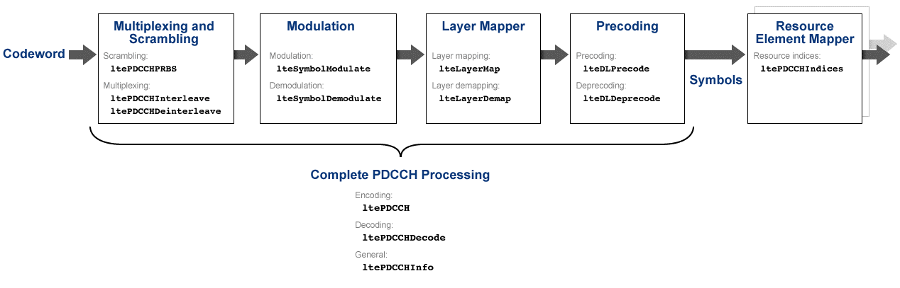 Полный процесс физического канала управления нисходящей линии связи и связанные с ним функции PDCCH низкого и среднего уровня показаны на следующей блок-схеме.