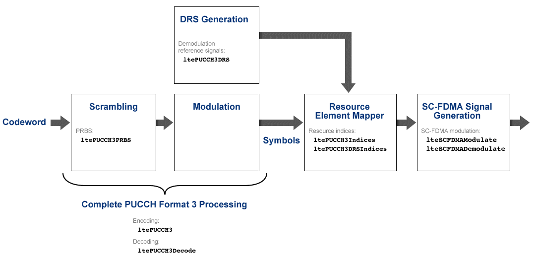 Полный процесс физического канала управления восходящей линии связи формата 3 и связанные с ним функции формата 3 PUCCH низкого и среднего уровня показаны на следующей блок-схеме.
