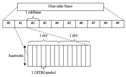 Продукт LTE Toolbox™ может генерировать и манипулировать сигналами для схем дуплексирования, указанных в стандарте LTE. В LTE передачи нисходящей линии связи и восходящей линии связи организованы в кадры радиосвязи длительностью 10 мс, состоящие из 10 последовательных подкадров, каждый из которых состоит из ряда последовательных символов OFDM, как показано на следующем рисунке.