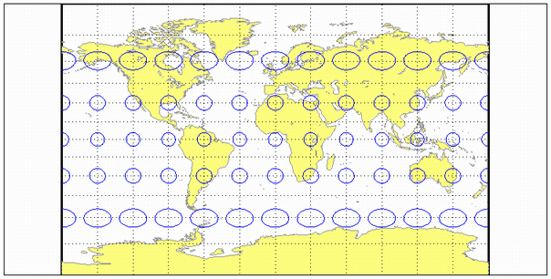 Для цилиндрических выступов задана только одна стандартная параллель. Другая стандартная параллель - та же широта с противоположным знаком. Для этой проекции может быть выбрана любая широта; по умолчанию произвольно устанавливается значение 0 °.