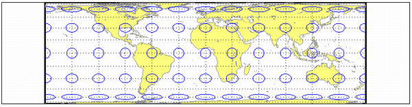 Для цилиндрических выступов задана только одна стандартная параллель. Другая стандартная параллель - та же широта с противоположным знаком. Для этой проекции может быть выбрана любая широта; по умолчанию произвольно устанавливается значение 0 ° (вариация Ламберта).