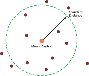 stdistСтандартное расстояние между географическими данными является мерой дисперсии данных с точки зрения их расстояния от географического среднего. Среди его преимуществ - его применимость в любой точке земного шара и его единая ценность: