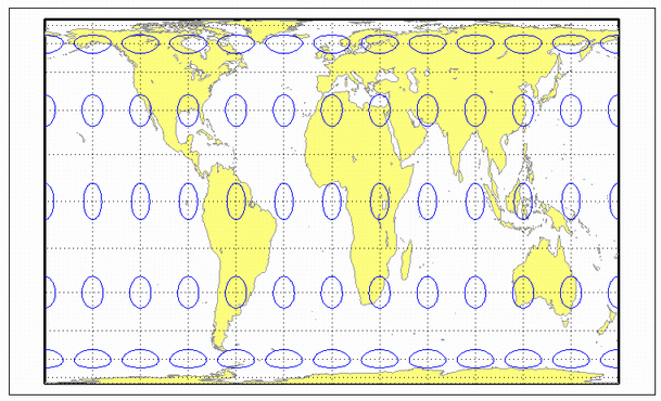 Для цилиндрических выступов задана только одна стандартная параллель. Другая стандартная параллель - та же широта с противоположным знаком. Для этой проекции стандартная параллель по определению зафиксирована на уровне 45 °.