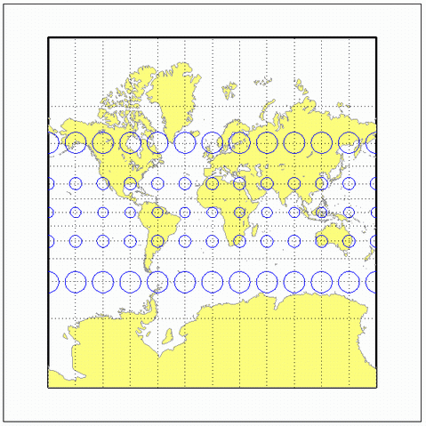Данные в широтах более 86 ° обрезаются, чтобы предотвратить доминирование больших значений Y на дисплее.