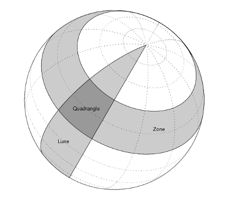 areaquad точный расчет, основанный на простой сферической геометрии. Для несферических эллипсоидов данные преобразуются во вспомогательную авторитарную сферу.