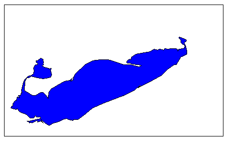 load greatlakes [lat, lon] = extractm(greatlakes, 'Erie'); axesm mercator geoshow(lat,lon, 'DisplayType','polygon', 'FaceColor','blue')