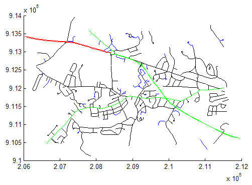 mapshow(roads,'SymbolSpec',blueRoads);