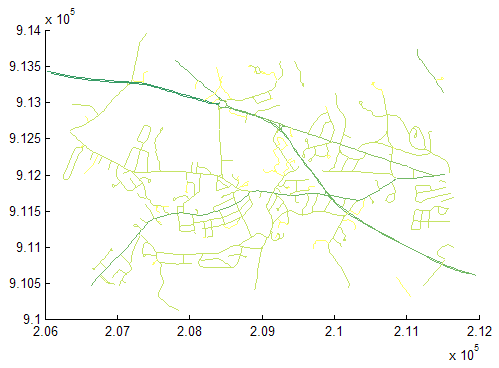 mapshow(roads,'SymbolSpec',colorRange);
