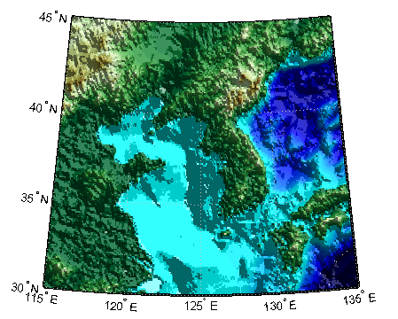 load korea5c worldmap(korea5c,korea5cR) meshlsrm(korea5c,korea5cR,[45 65])