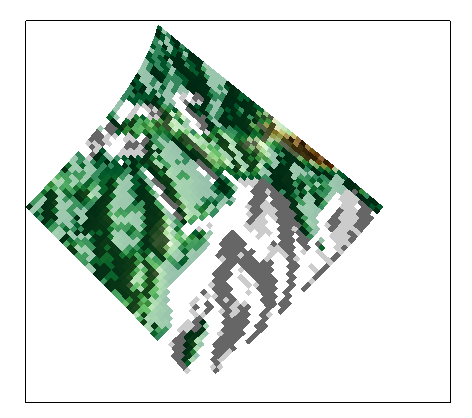 load mapmtx [cmap,clim] = demcmap(map1,[],[1 1 1],[]); axesm loximuth surflsrm(lt1,lg1,map1,[],cmap,clim)