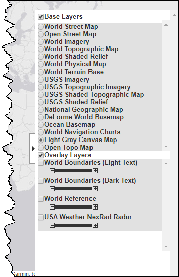 После открытия веб-карты можно изменить базовый слой (базовую карту) с помощью Диспетчера слоев. Чтобы открыть Диспетчер слоев, выберите стрелку расширения
