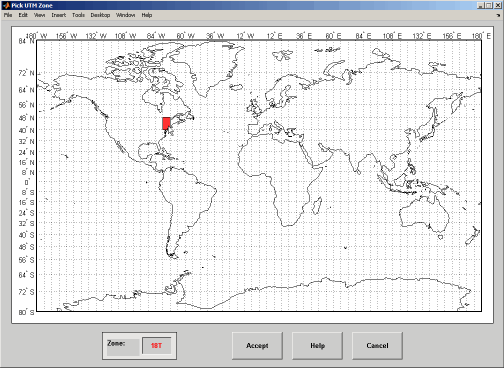 Нажмите кнопку «Зона», чтобы открыть utmzoneui панель. Щелкните карту рядом с интересующей областью, чтобы выбрать зону: