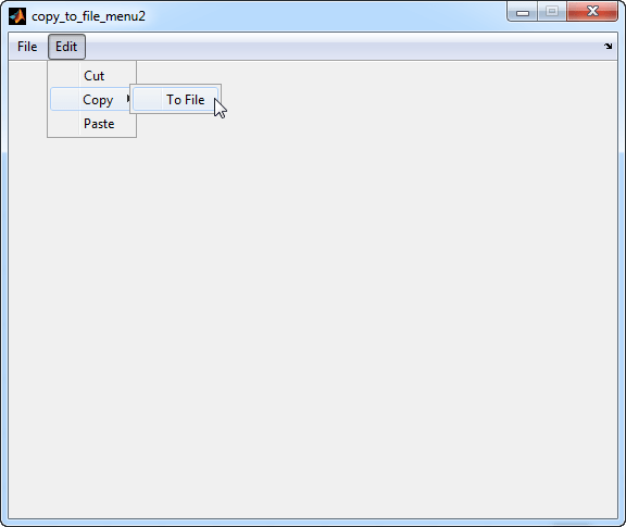 % -------------------------------------------------------------------- function edit_menu_Callback(hObject, eventdata, handles) % hObject handle to edit_menu (see GCBO) % eventdata reserved - to be defined in a future version of MATLAB % handles structure with handles and user data (see GUIDATA) display('Edit menu selected'); % -------------------------------------------------------------------- function copy_menu_item_Callback(hObject, eventdata, handles) % hObject handle to copy_menu_item (see GCBO) % eventdata reserved - to be defined in a future version of MATLAB % handles structure with handles and user data (see GUIDATA) display('Copy menu item selected'); % -------------------------------------------------------------------- function tofile_menu_item_Callback(hObject, eventdata, handles) % hObject handle to tofile_menu_item (see GCBO) % eventdata reserved - to be defined in a future version of MATLAB % handles structure with handles and user data (see GUIDATA) [filename,path] = uiputfile('myfile.m','Save file name');