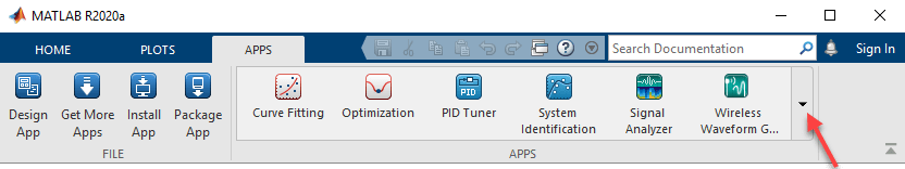Приложение MATLAB ® представляет собой автономную программу MATLAB с пользовательским интерфейсом, который автоматизирует задачу или вычисление. Все операции, необходимые для выполнения задачи - получение данных в приложение, выполнение вычислений над данными и получение результатов, выполняются в приложении. Приложения включены во многие продукты MATLAB. Кроме того, можно создавать собственные приложения с помощью среды разработки App Designer. На вкладке «Приложения» панели инструментов MATLAB отображаются все установленные приложения, если щелкнуть стрелку вниз справа от панели инструментов .