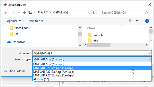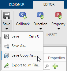 Чтобы сохранить приложение в формате, который можно редактировать в более ранних версиях, используйте команду Сохранить копию как. При использовании этого параметра App Designer сохраняет копию приложения в указанной папке, но не заменяет приложение в текущем сеансе.