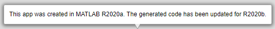 Если открыть приложение для редактирования, созданное в предыдущей версии, App Designer обновит приложение и отобразит сообщение, подобное этому.