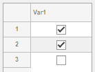 fig = uifigure; tdata = table([true; true; false]); uit = uitable(fig,'Data',tdata); uit.Position(3) = 130; uit.RowName = 'numbered';