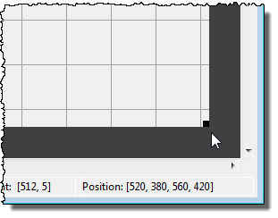 При перетаскивании углового маркера в правом нижнем углу отображается текущее положение пользовательского интерфейса в пикселях.