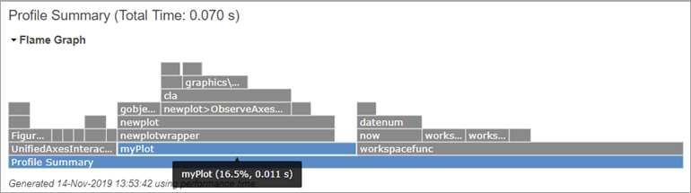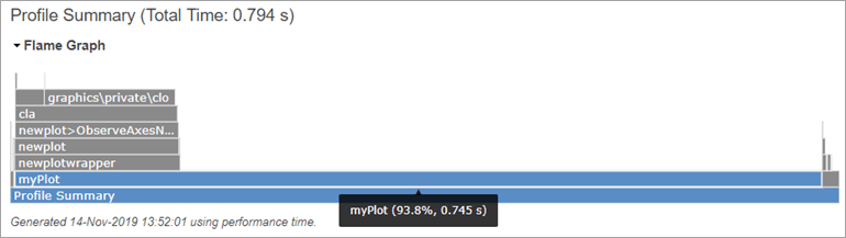 При профилировании этого кода вы видите, что большинство времени тратится в myPlot функция: