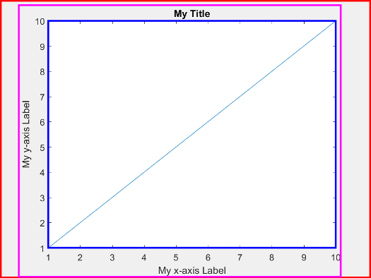 Обычно, покидая PositionConstraint свойство имеет значение 'outerposition' является предпочтительным. Однако заголовок или метки слишком длинных осей могут уменьшить внутреннюю область осей до размера, который трудно прочитать. В таком случае сохранение внутренних осей на определенном размере может быть предпочтительным, даже если окружающий текст отклоняется от фигуры.