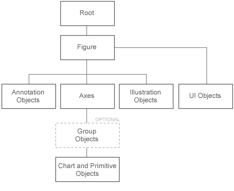 Связь между объектами сохраняется в Parent и Children свойства. Например, родителем осей является фигура. Parent свойство оси содержит дескриптор фигуры, в которой он содержится.