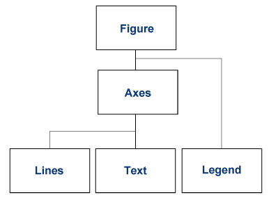 Например, предположим, что линейный график создается с помощью plot функция. Объект axes определяет опорную рамку для линий, представляющих данные. Рисунок - это окно для отображения графика. Рисунок содержит оси, а оси содержат линии, текст, легенды и другие объекты, используемые для представления графика.