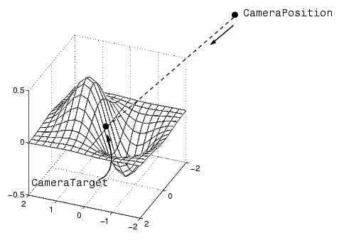 Графика камеры основана на группе свойств осей, которые управляют положением и ориентацией камеры. В общем случае, команды камеры, такие как campos, camtarget, и camup, сделать ненужным прямой доступ к этим свойствам.