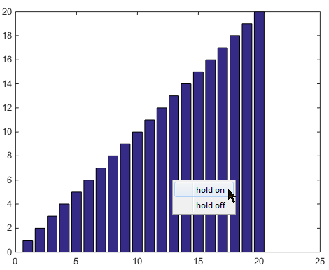 function cmHandle = axesHoldCM cmHandle = uicontextmenu; uimenu(cmHandle,'Label','hold on','Callback',@holdOn); uimenu(cmHandle,'Label','hold off','Callback',@holdOff); end function holdOn(~,~) fig = gcbf; ax = fig.CurrentAxes; hold(ax,'on') end function holdOff(~,~) fig = gcbf; ax = fig.CurrentAxes; hold(ax,'off') end