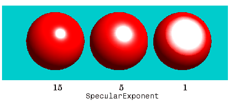 На этом рисунке показана красная сфера, освещенная белым светом с тремя различными значениями для SpecularExponent собственность.