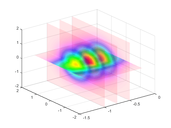 Создайте плоскости среза, установите альфа-данные равными цветовым и задайте интерполированные FaceColor и FaceAlpha.