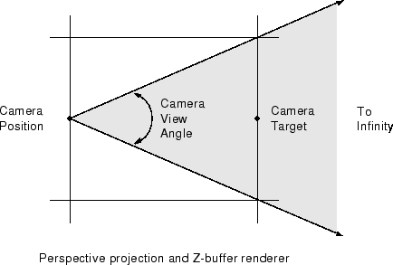 В перспективной проекции отображается только то, что видно в конусе угла обзора камеры.