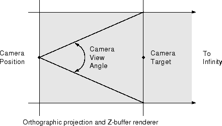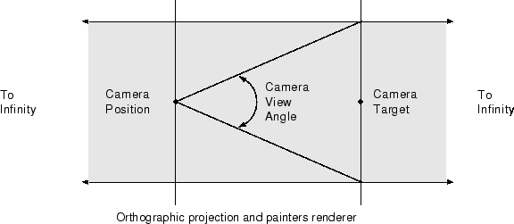 Эта диаграмма иллюстрирует то, что вы видите (серую область) при использовании ортогональной проекции и OpenGL. Все, что перед камерой, видно.