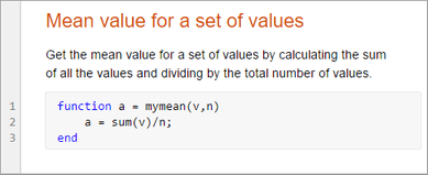 После создания функции live добавьте к ней код и сохраните его. Например, добавьте этот код и сохраните его как функцию с именем mymean.mlx. mymean функция вычисляет среднее значение входного списка и возвращает результаты.