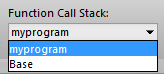Чтобы проверить переменную во время отладки, необходимо сначала выбрать ее рабочую область. Переменные, назначаемые в окне команд или создаваемые с помощью сценариев, относятся к базовому рабочему пространству. Переменные, создаваемые в функции, принадлежат к их собственной рабочей области функций. Для просмотра текущего рабочего пространства перейдите на вкладку «Редактор». В поле Stack Function Call отображается текущее рабочее пространство. Кроме того, можно использовать dbstack в окне команд.