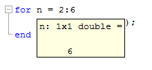 Просмотрите значения переменных как подсказку данных в редакторе MATLAB.