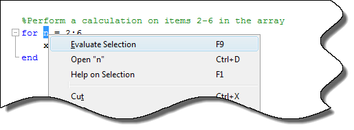С помощью мыши выберите переменную или уравнение. Щелкните правой кнопкой мыши и выберите «Вычислить выбор» в контекстном меню. В окне команд отображается значение переменной или уравнения.