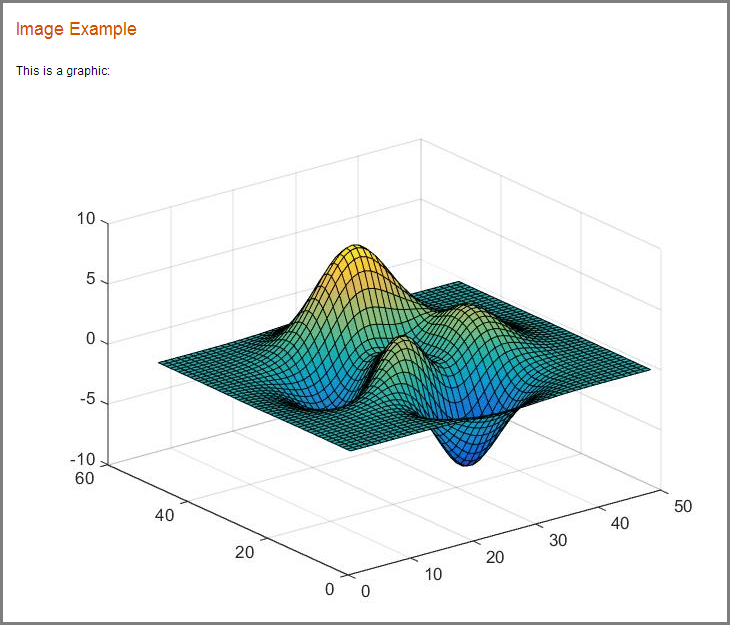 Чтобы опубликовать изображение, которое не создается кодом MATLAB, используйте разметку текста. По умолчанию MATLAB уже включает сгенерированную кодом графику.