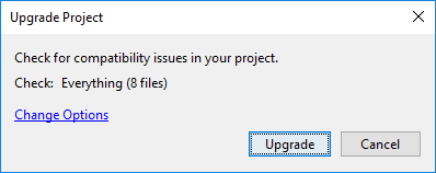 Средство обновления проекта отображает результаты проверки совместимости или обновления в отчете об обновлении проекта.