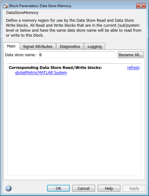 GlobalSysObjMatrix объект в системном блоке MATLAB и связанном с ним блоке памяти хранилища данных.