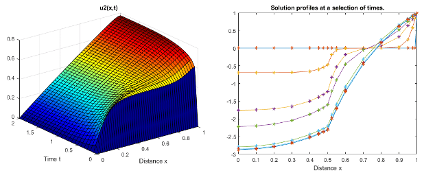 В этом примере показано, как решить систему дифференциальных уравнений в частных производных, которая использует ступенчатые функции в начальных условиях.