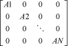 Блок-диагональная матрица - матрица, диагональ которой содержит блоки меньших матриц, в отличие от правильной диагональной матрицы с одиночными элементами по диагонали. Блок-диагональная матрица приобретает следующий вид, где A1, A2,..., AN - каждая матрица, которая может отличаться по размеру: