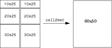 cell | cell2struct | cell2table | iscell | mat2cell | num2cell | struct2cell | table2cell
