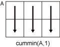 Если A является многомерным массивом, то cummin(A) возвращает массив того же размера, содержащий накопительные минимумы вдоль первого измерения массива A размер которого не равен 1.