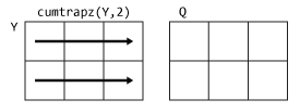 Если Y является многомерным массивом, то cumtrapz(Y) интегрируется по первому размеру, размер которого не равен 1.