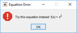 f = errordlg создает диалоговое окно ошибки с заголовком и сообщением по умолчанию следующим образом.